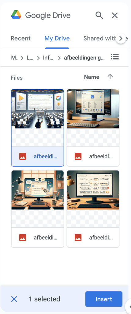 - Maak in je drive – documenten een nieuwe map met de naam Afbeeldingen gebruiken.