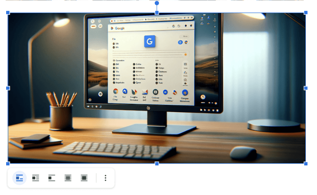 Je kunt dat regelen met de icoontjes die onder de foto staan als je de afbeelding selecteert.