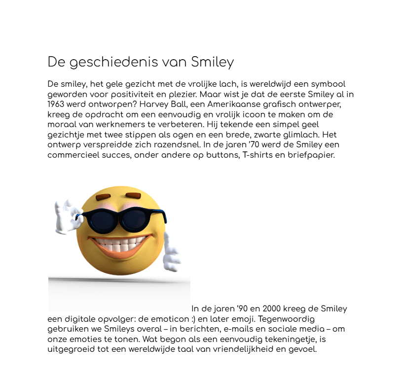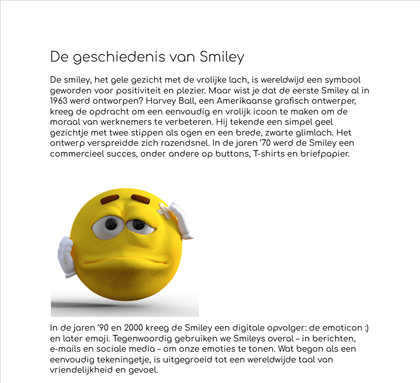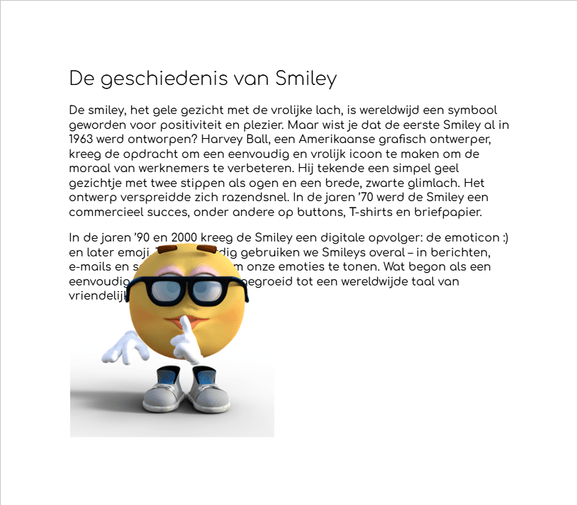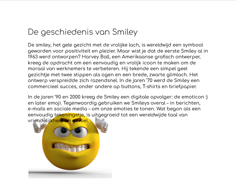 De afbeelding staat nu netjes tussen de eerste en de tweede alinea en heeft dezelfde breedte gekregen als de tekst