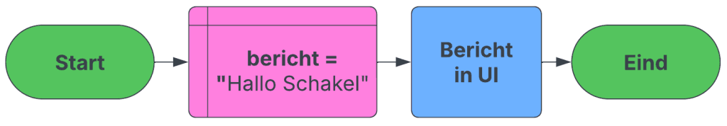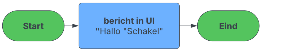 - Een melding met de tekst “Hallo Schakel” wordt direct in de UI weergegeven.