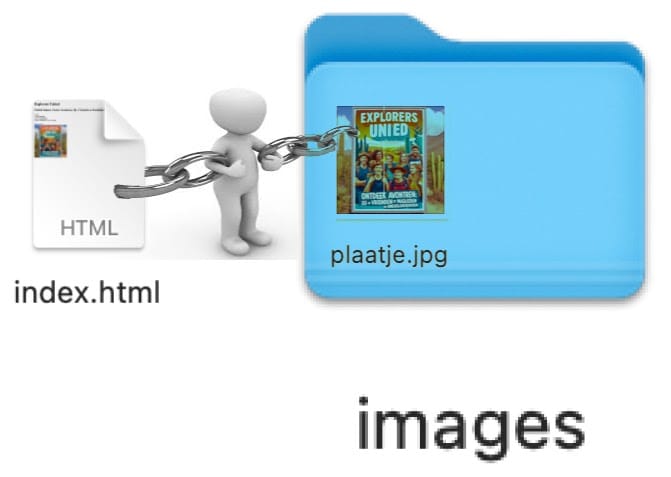 …… dat je niet de foto zelf in de html pagina hebt gezet, maar een koppeling hebt gemaakt tussen index.html en plaatje.jpg