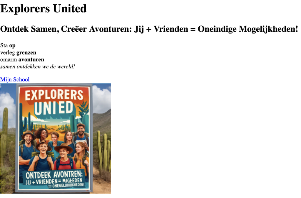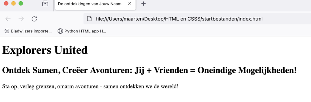 Het doel van de opdracht op deze pagina is vooral het wennen aan de syntax van HTML