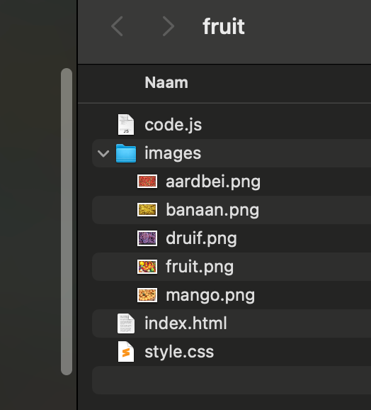 var fruit = ["fruit", "banaan", "druif", "mango", "aardbei"];