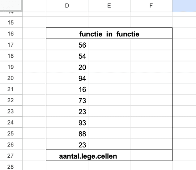 Maak in je spreadsheet een nieuw blokje aan zoals in de afbeelding hiernaast.