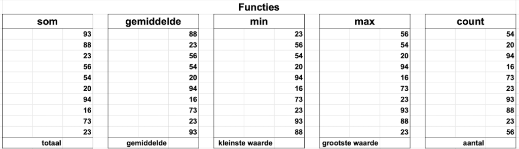 Je gaat nu oefenen met de 5 meest gebruikte functies.