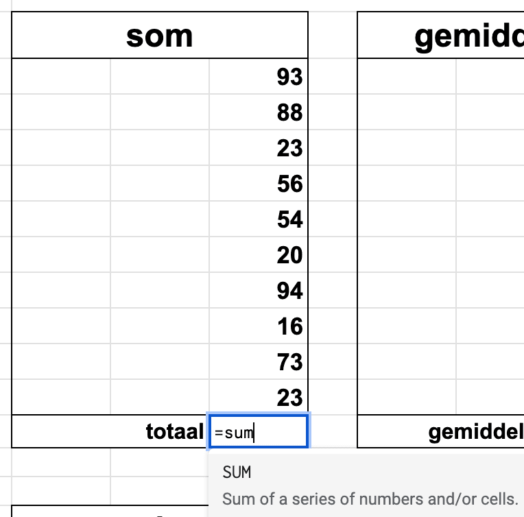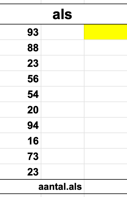 Het bereik is steeds de cellen in de kolom boven de cel met de functie.
