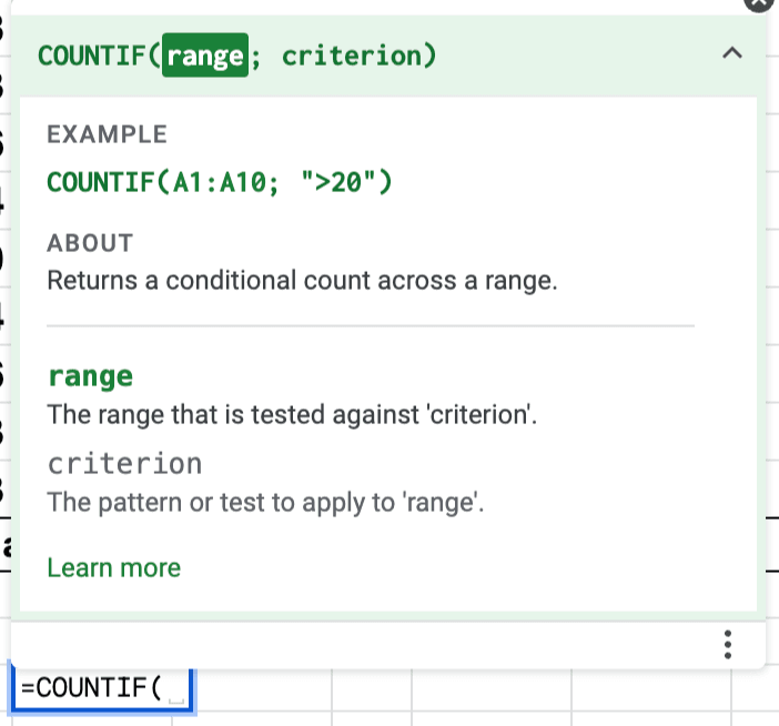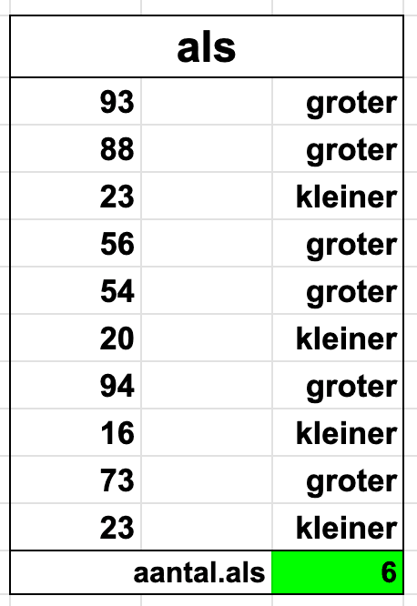 Met COUNTIF tellen we het aantal cellen binnen een bereik dat voldoet aan een bepaalde voorwaarde.