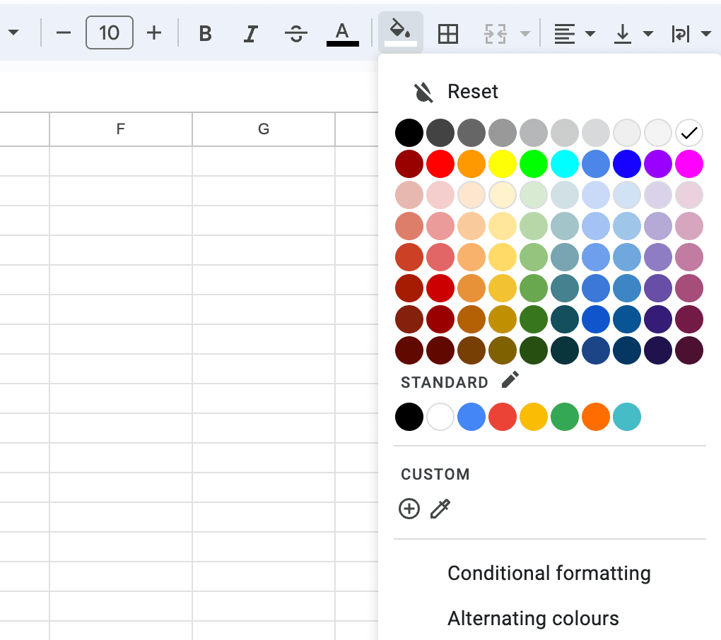 • Klik in de balk boven in het scherm op de knop fill colour.