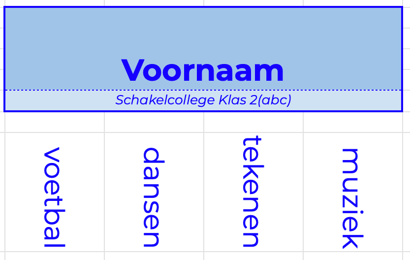 • Selecteer de cellen en verander de Tekstrotatie als in het voorbeeld.